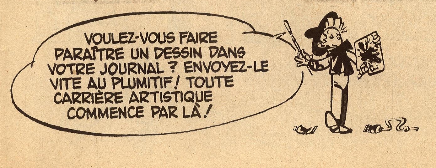 Dès ce premier numéro ce trio déborde de cet espace et occupe les hauts et les bas de page du journal (cf. ci dessous). Si, pour les hauts de page, les dessins prennent simplement la place des bandeaux titre habituels, la libération d'espace pour les bas de page oblige à remonter la planche dessinée de 1 ou 2 centimètres.